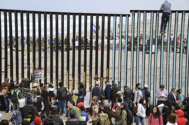 Immigrants from Central America reach the border in Tijuana, Mexico, to seek asylum in the United States on April 29, 2018. (Kyodo via AP)